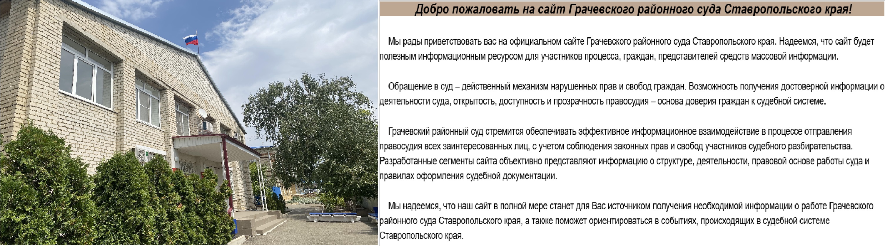 356250, Ставропольский край, с. Грачевка, ул. Советская, д. 2 АТел.: (86540) 4-12-11grachevsky.stv@sudrf.ru